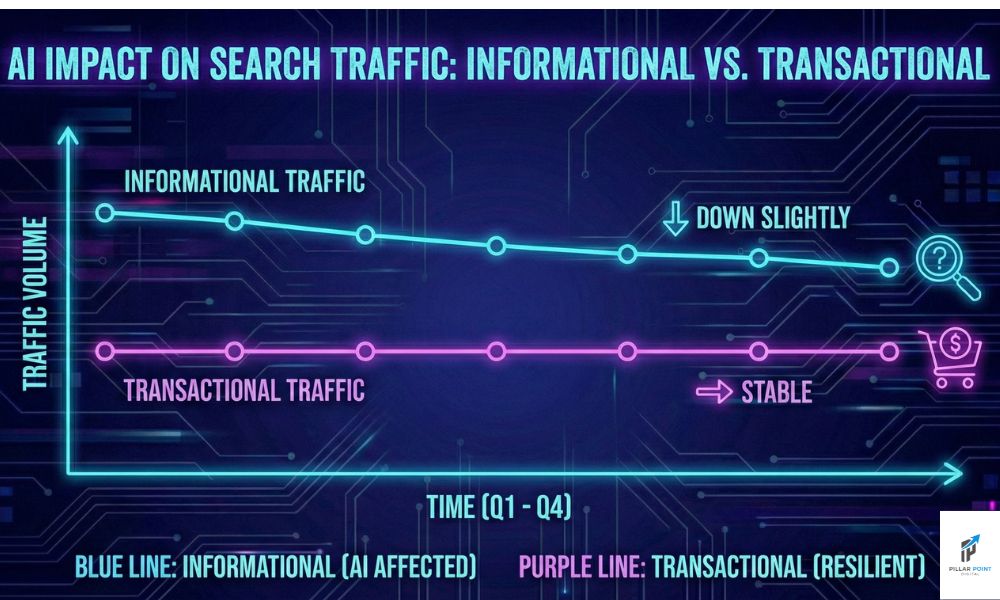 Informational content: Lost 10-20% of clicks (AI answers the question, fewer click-through)