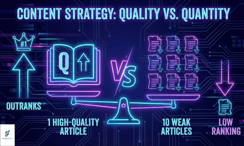 Here’s a truth bomb: One exceptional article beats 10 mediocre ones.